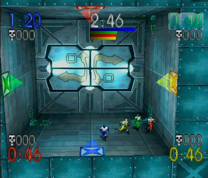 Blast Chamber was released to above-average review scores in the high 60s and 70s but garnered much praise from critics for its original idea. Taking a look at the Wiki article about it, I see that Shawn Smith and Dan Hsu of Electronic Gaming Monthly called it “the most original game of the year” and “almost a perfect multiplayer game, like a Bomberman for the next generation.”