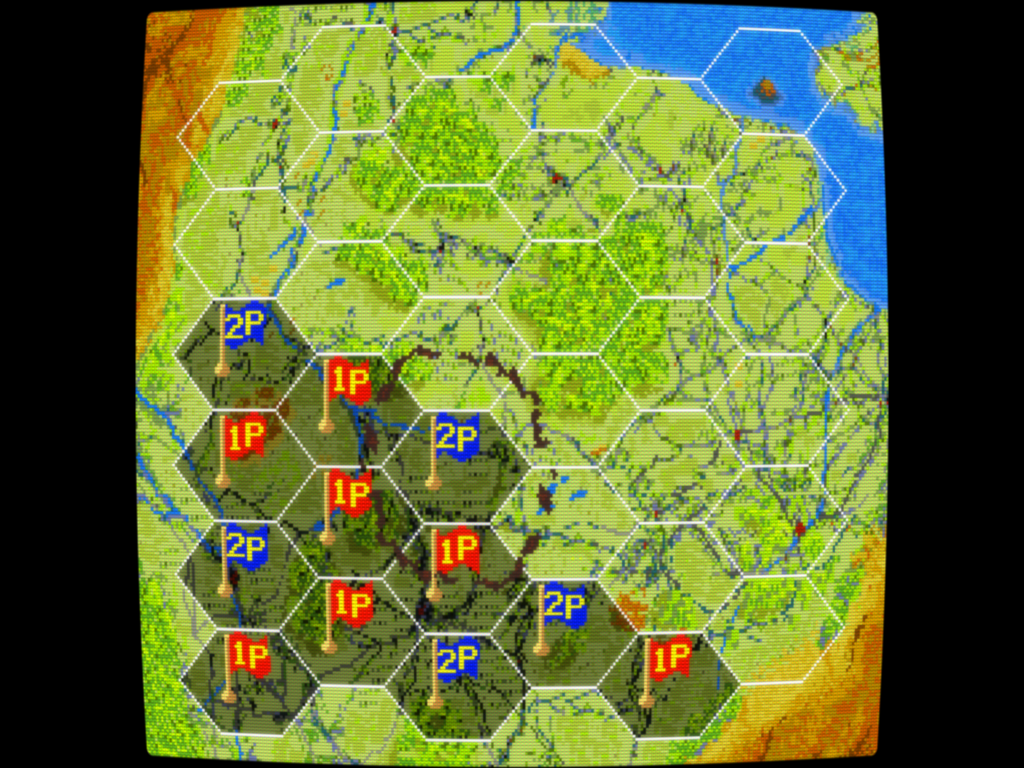 Of course, in the arcade in ’91 and forking over coins to play, this might have caused some genuine bad blood between siblings or friends. But I can imagine it also fuelled friendly rivalries as blue and red flags competed to dominate the stage map.