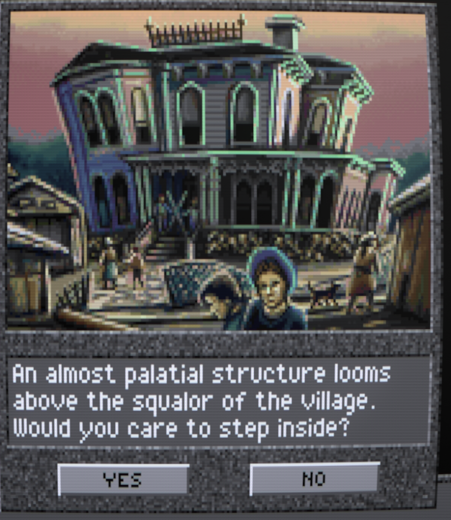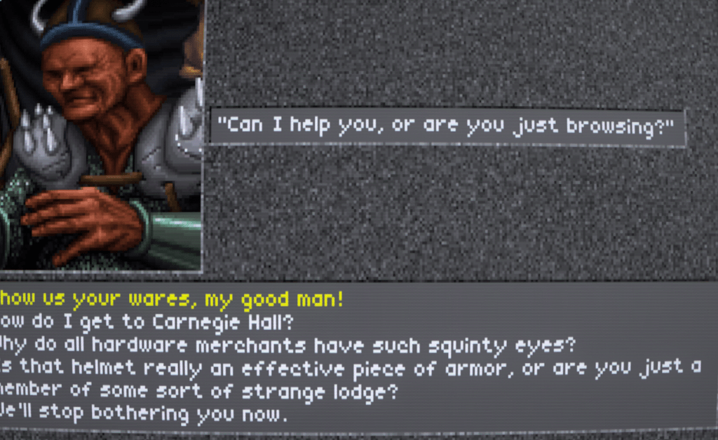 It’s here where I’ll get one of my main critiques of Hoboken out of the way: every city-state marketplace and merchant NPC has identical artwork and the same text descriptions and dialogue. It’s something that the game itself lampshades in a few different ways citing budget cuts or coming up with a lore explanation, but I feel that only goes so far. You’ll chuckle at it once and then quickly wish for more variety.