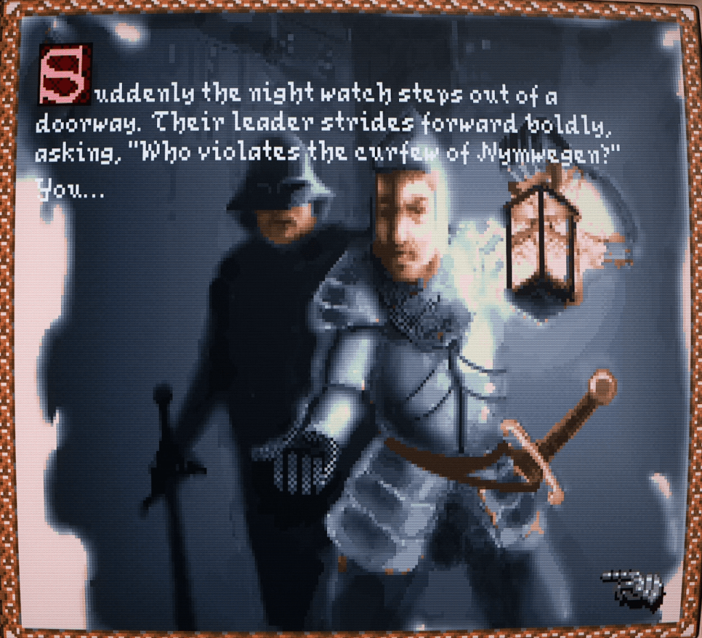 Gorgeous artwork accompanies the text and menu-driven interface. It’s actually quite daunting navigating the larger cities as there are a lot of locations to visit. And aside from the suggestions your fellow party members make in the tavern, there is no other guidance on where to start. No immediate ‘main quest’ thread dangled before you to grab onto. Darklands is a true sandbox in the Mount & Blade style, focused as much on being a simulation of late medieval Europe as it is on providing a role-playing experience.
