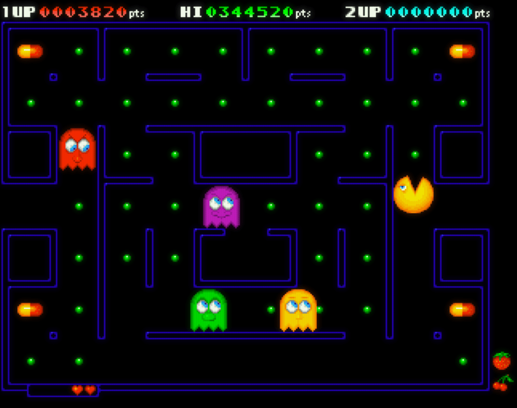 Pac-Man arcade purists will surely dislike some of the other power-ups, such as a FREEZE that, well, freezes the ghosts in place. When combined with a power pill (sometimes given an actual pill sprite!) these make getting the 1600 score bonus a breeze.