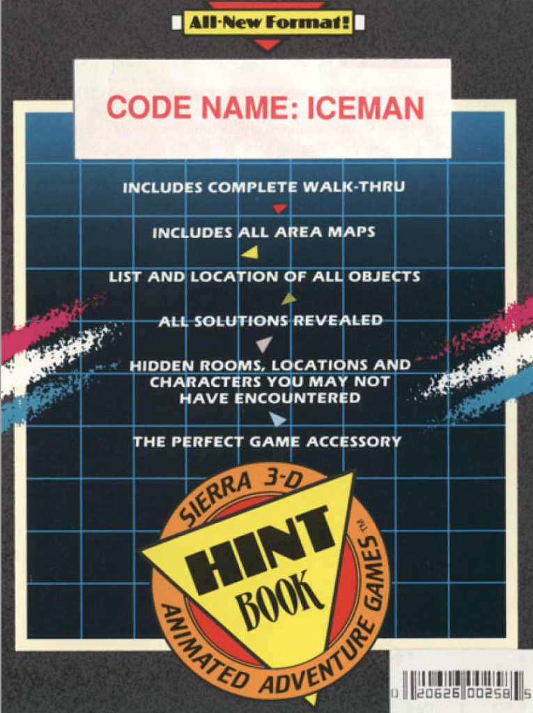 Heading over to Sierra On-Line offers us a solid example of a more standardized clue book format – with a little twist in how they presented the information so you wouldn’t get spoiled on other puzzles. They would be supplied with a strip of red film to place over the obscured solutions so you can read the text beneath.