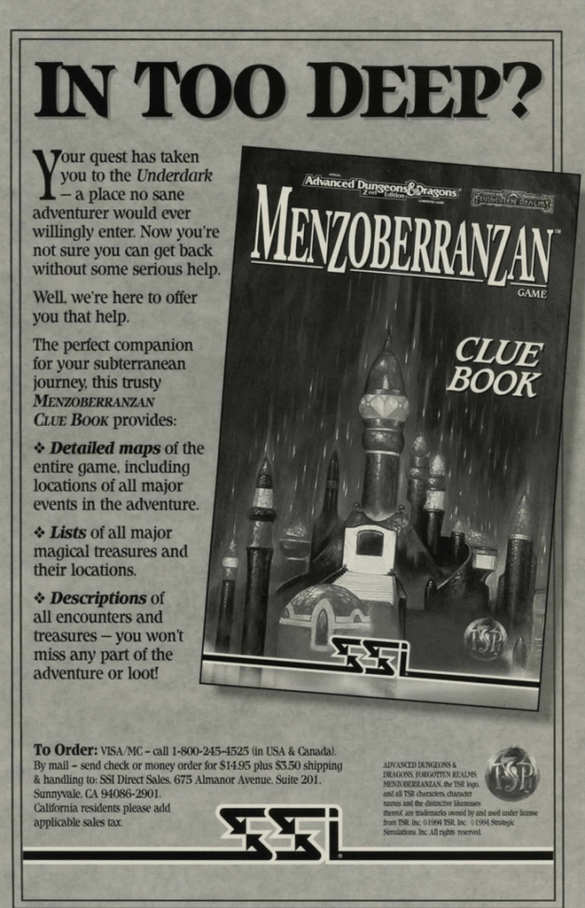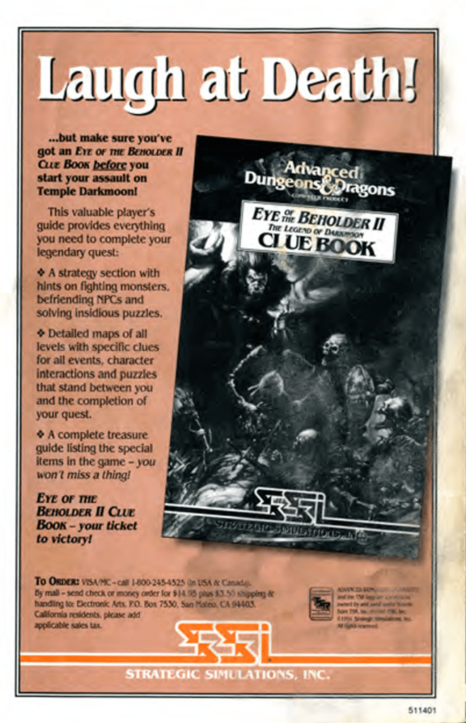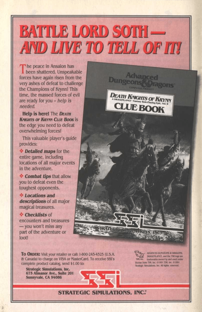 Soft pressure to cough up some extra bucks will often begin immediately inside the game box or the back of the manual. Dear reader, let me introduce you to the company that kept the gears of the clue book printing presses exceedingly well-oiled: Strategic Simulations Inc.
