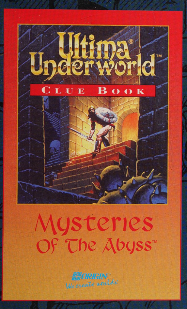 Ultima Underworld is a grim game in tone, so I guess the more serious nature of the artwork in the English clue book fits better? But I do so love the cheeky illustrations of its counterpart.
