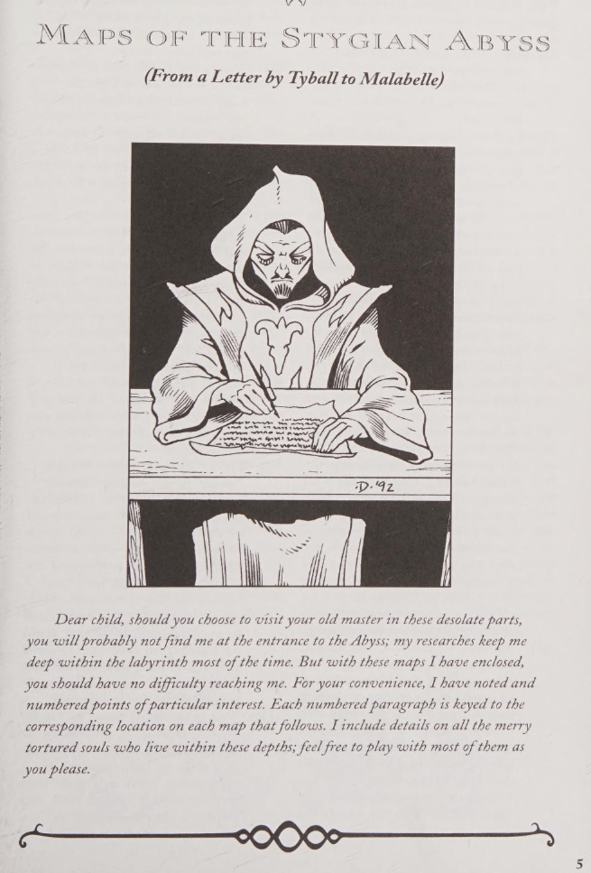 Where the English clue book wins points with me is how it too incorporates more of a narrative style in its walkthrough, framed as a letter and guidance from a foul-tempered and quite sadistic father residing in the Stygian Abyss to their child.