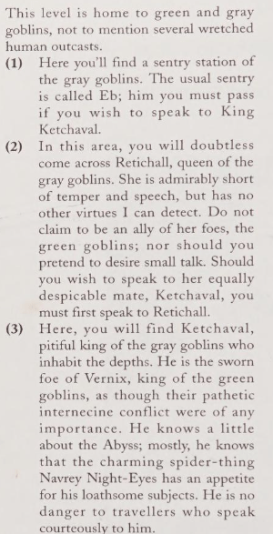 It’s a shame more clue book writers didn’t cotton onto the potential for additional storytelling or raising a smile or two. After all, once a player is through a game with the aid of a clue book, what is the chance that they’ll pick it up again? But if it spins a memorable and entertaining yarn, then they may do so independently, chuckling at the sour scribblings of a villainous denizen of the Abyss or at Wentley’s sewer-delvings.