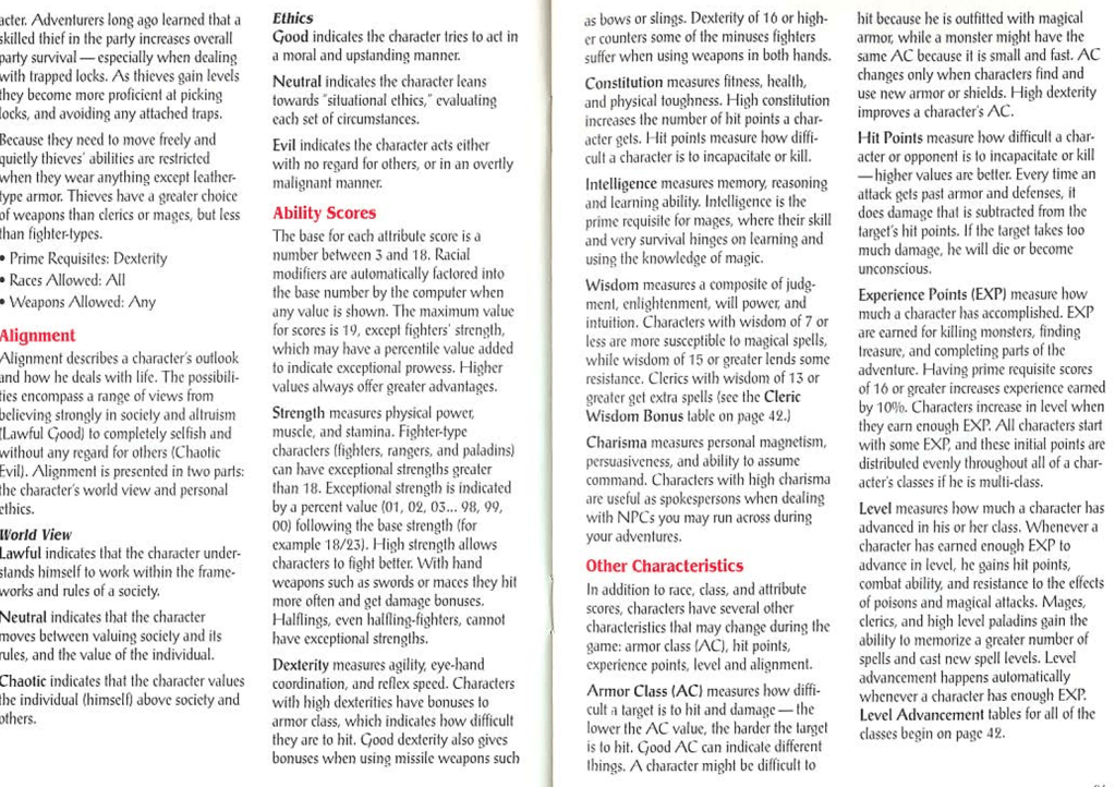 While the manual speaks in vague terms about how combat works and how higher stats are better, the strategy section of the clue book breaks down exactly how things like THAC0 work. This could easily have been included in the manual in the place of the round-about way of talking about them. If you didn’t already have a background in the AD&D TTRPG, you may be confused about all the terms – unless you bought the clue book alongside EOB.
