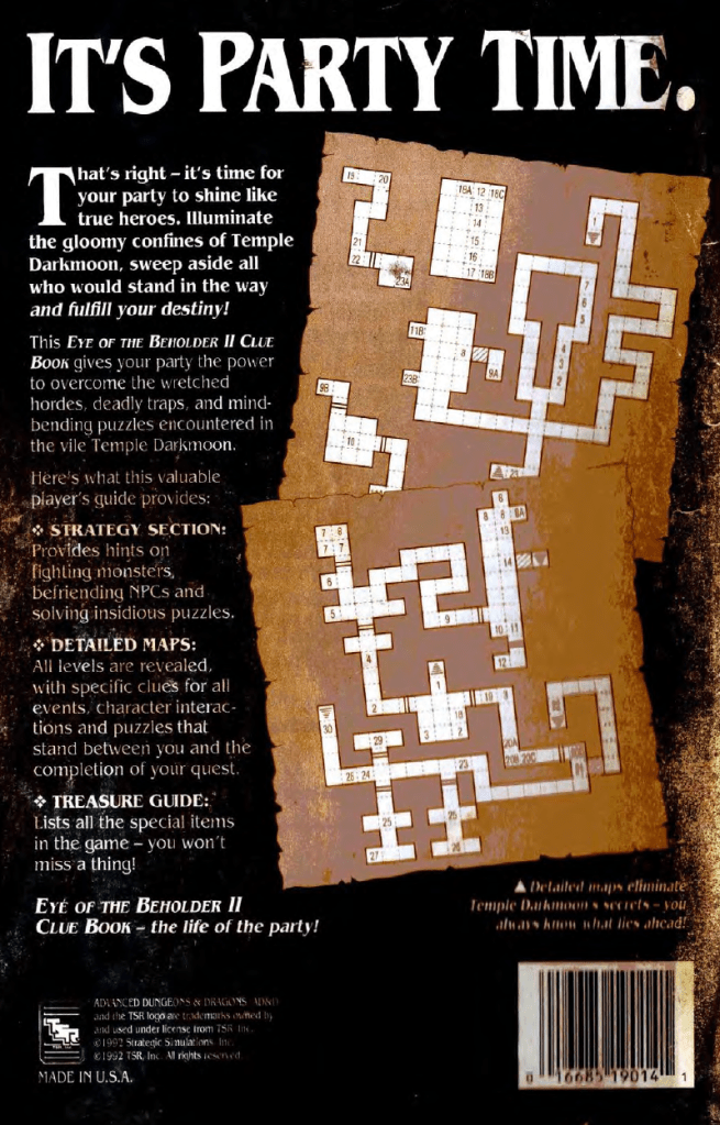 The same can be said for clue books. As lovely as Eye of the Beholder’s cluebook is, it withholds some pretty useful information not included in either the game or the manual.