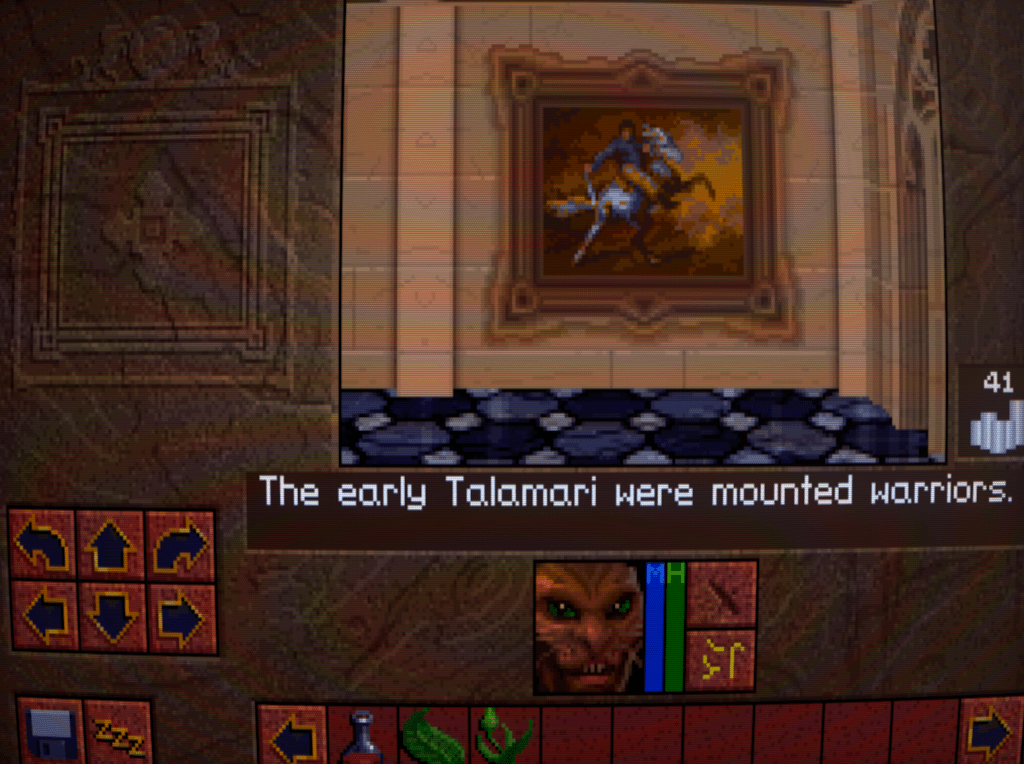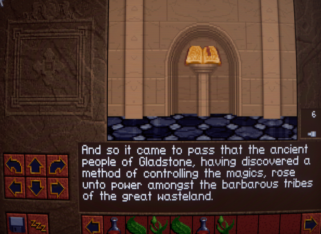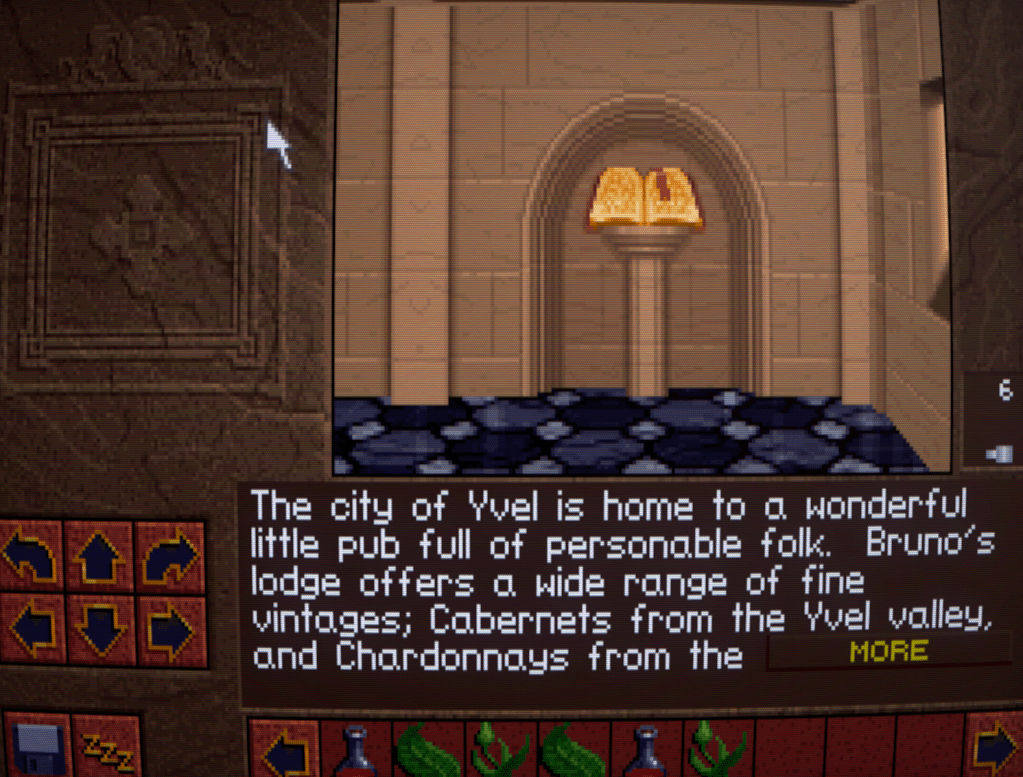 I’m especially fond of travelogues for fictional settings, ever since the Volo’s books for AD&D, so props to Westwood for wanting to flesh out their world like this. There are also a few snippets of useful advice for situations and foes in the game, so be sure to click several times on each book!