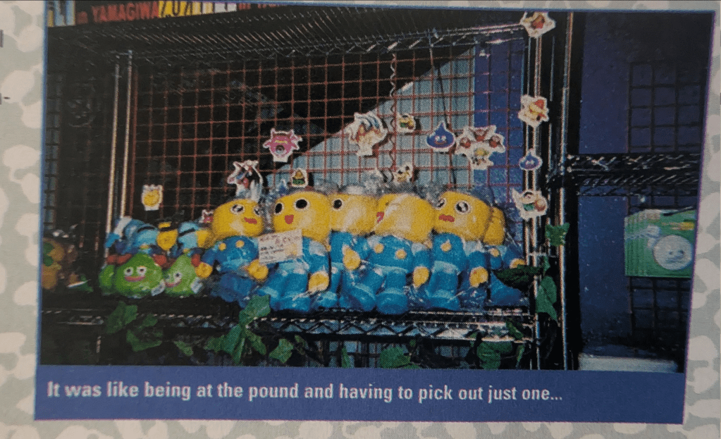 What else could be had? Actually, most of the $400+ I spent (…holy cats!) went toward obscure video game soundtrack CDs, which, as you know if you’ve been following along, I have a thing for. Locating the out-of-print Super Mario World and Donkey Kong Country arranged albums brought a tear to my eye, especially since the only MP3s I had of the latter were off of a second-generation cassette tape. Finally, in one store I was able to find a complete selection of game character goods. I passed up the cold cast Final Fantasy statuettes and Mog plushies in favor of a big plush Kobun (Servbot), whom I wuv vewy much.